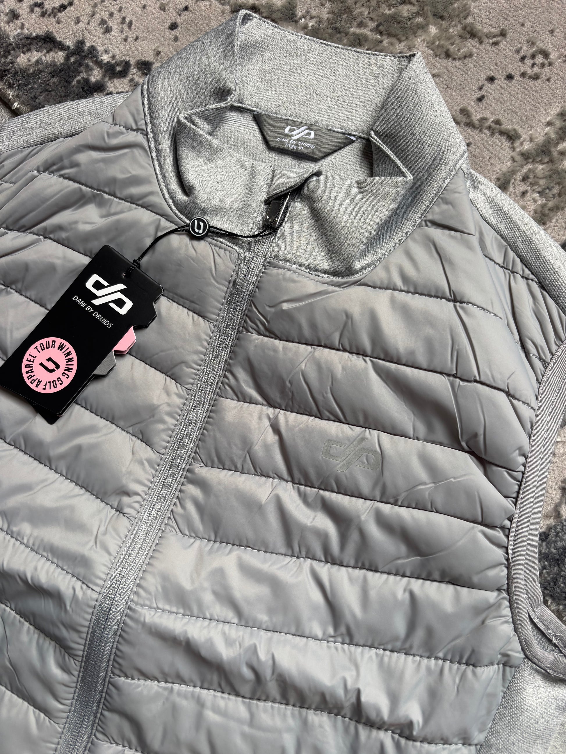This Women's Druids Golf Gillet in Grey is designed for the female golfer. With its sleek and stylish design, this gillet will keep you warm and comfortable on the course. Made from high-quality materials, it offers durability and breathability. Perfect for every swing, every game.